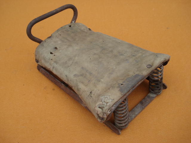 ASIENTO TRASERO DE MOTO ANTIGUA, AÑOS 20-30, IDEAL PARA MOTOCONFORT, AUTOMOTO, PEUGEOT, BSA, NORTON, AJS, TERRROT, ETC…ESTA PARA RESTAURAR, PERO LA BASE DE HIERRO ESTA BASTANTE BIEN.